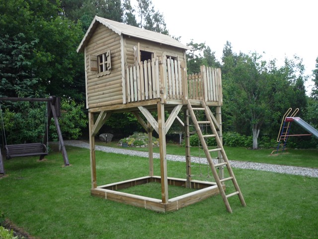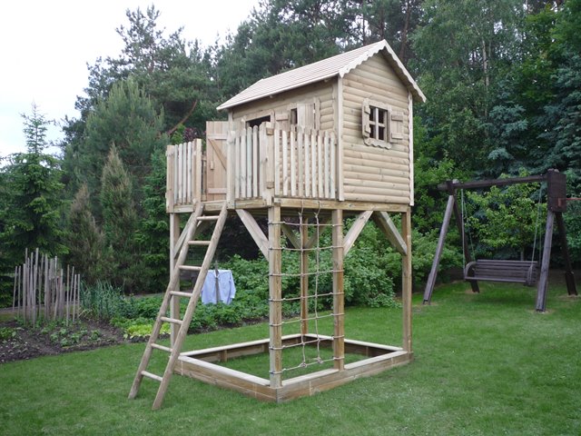Domek wykonany jest z impregnowanego ciśnieniowo drewna sosnowego