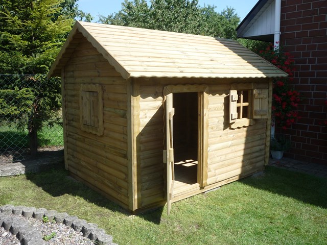 Domek wykonany jest z impregnowanego ciśnieniowo drewna sosnowego i doskonale wkomponuje się w każdy ogród, w którym bawią się małe szkraby.