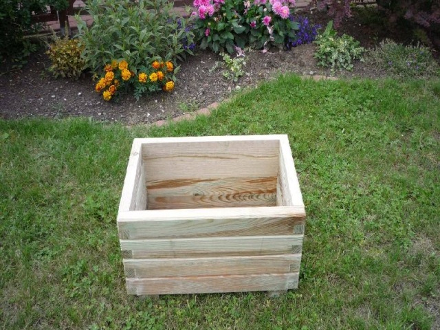 Donica kwadratowa o solidnej i stabilnej konstrukcji, wykonana z impregnowanego ciśnieniowo drewna sosnowego. Grubość ścianki donicy wynosi aż 3,5cm, co zapewnia jej znaczną wytrzymałość i długotrwałe użytkowanie.