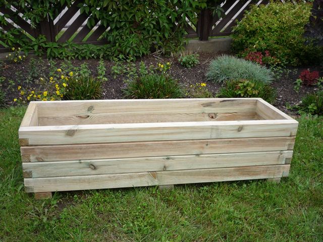 Donica prostokątna o solidnej i stabilnej konstrukcji, wykonana z impregnowanego ciśnieniowo drewna sosnowego. Grubość ścianki donicy wynosi aż 3,5cm, co zapewnia jej znaczną wytrzymałość i długotrwałe użytkowanie.