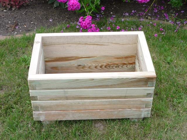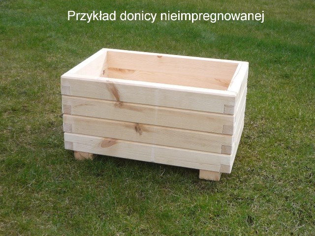 Donica prostokątna o solidnej i stabilnej konstrukcji, wykonana z impregnowanego ciśnieniowo drewna sosnowego. Grubość ścianki donicy wynosi aż 3,5cm, co zapewnia jej znaczną wytrzymałość i długotrwałe użytkowanie.