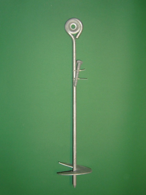 Kotwa służy do przymocowania nóg domków lub stojaków do podłoża (ziemi lub trawnika)