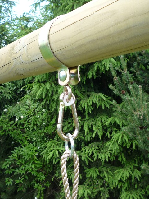 Obejmy służą do zawieszania huśtawek, lin, drabinek i innych akcesoriów na okrągłej górnej belce.