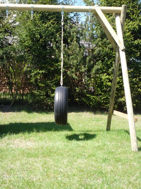 Huśtawka dziecięca w kształcie opony do zawieszenia w pionie. Klasyczny wygląd i forma pozwala na zabawę w grupie. Wykonana z mocnych i trwałych materiałów, co zapewnia bezpieczeństwo dziecku podczas bujania. Bardzo prosta w montażu. Do zawieszenia opony na stojaku niezbędnym elementem jest jedna obejma, dostępna również w naszej ofercie.