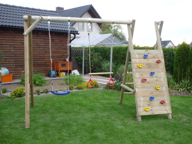 Widoczne na niektórych zdjęciach akcesoria (kamienie wspinaczkowe, huśtawki, kotwy i inne) nie wchodzą w skład zestawu – są to przykłady montażu u klientów.