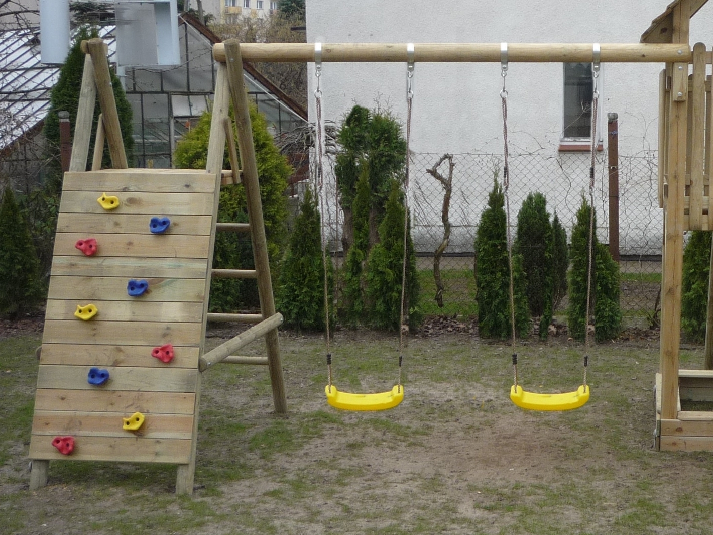 Widoczne na niektórych zdjęciach akcesoria (kamienie wspinaczkowe, huśtawki, kotwy i inne) nie wchodzą w skład zestawu – są to przykłady montażu u klientów.
