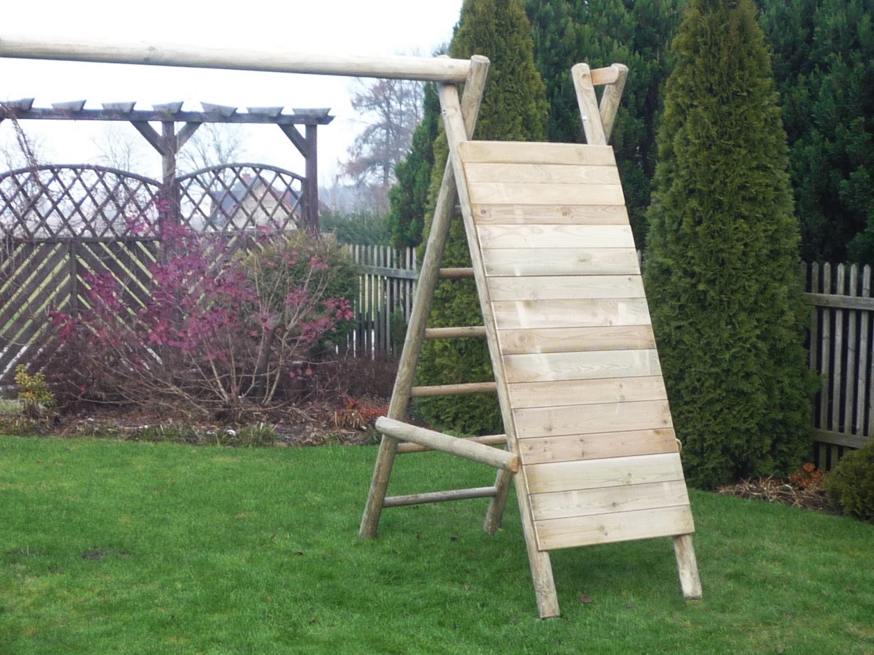 Dostawiany stojak na huśtawki OLEK z drabinką i ścianką wspinaczkową (bez akcesoriów).
