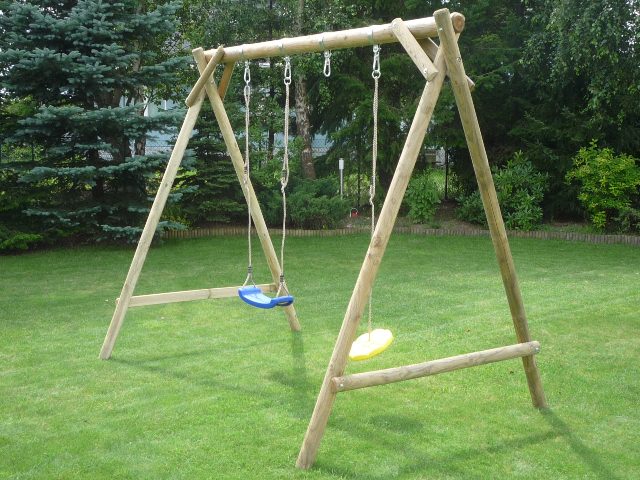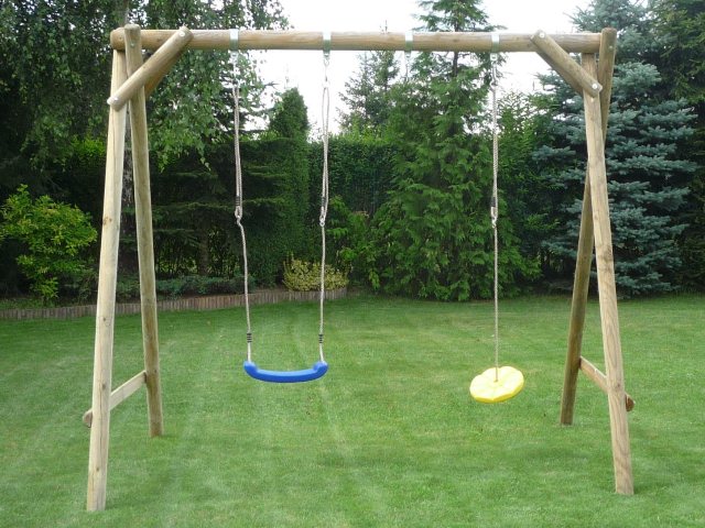 Stojak z belką górną 240cm mieści swobodnie 2 standardowe huśtawki. W przypadku montażu bocianiego gniazda i standardowej huśtawki konieczna jest górna belka o długości 300cm.