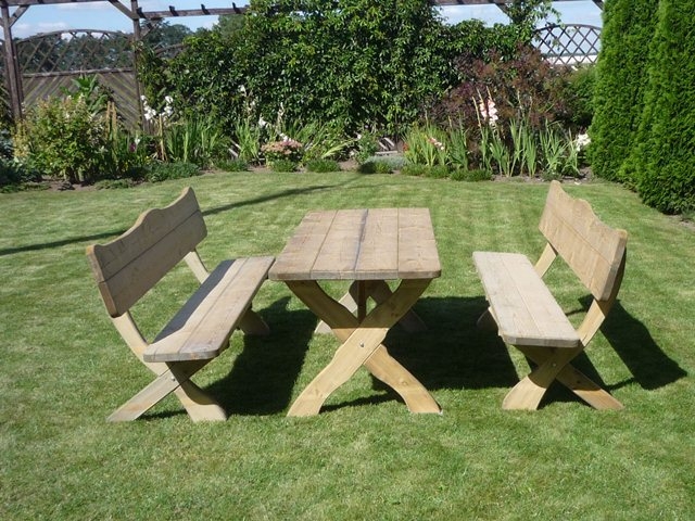 Stół o solidnej konstrukcji i prostym montażu, wykonany z impregnowanego ciśnieniowo drewna sosnowego.