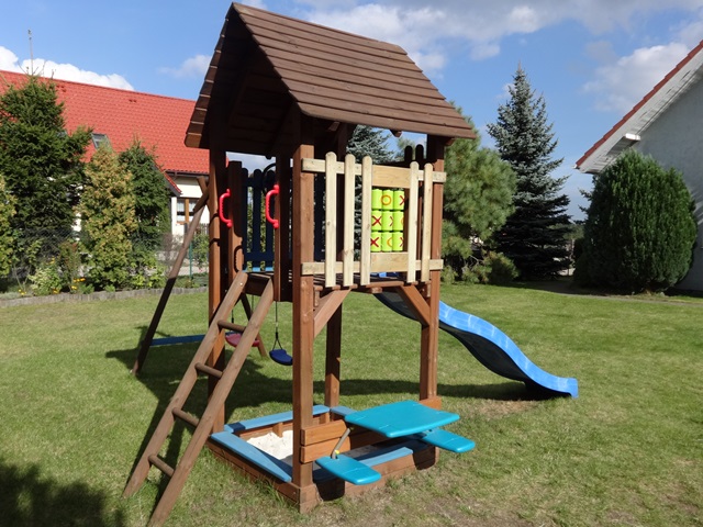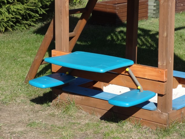 Stoliczek idealnie pasuje do przydomowego placu zabaw. Jest to ciekawa i praktyczna propozycja dla najmłodszych.