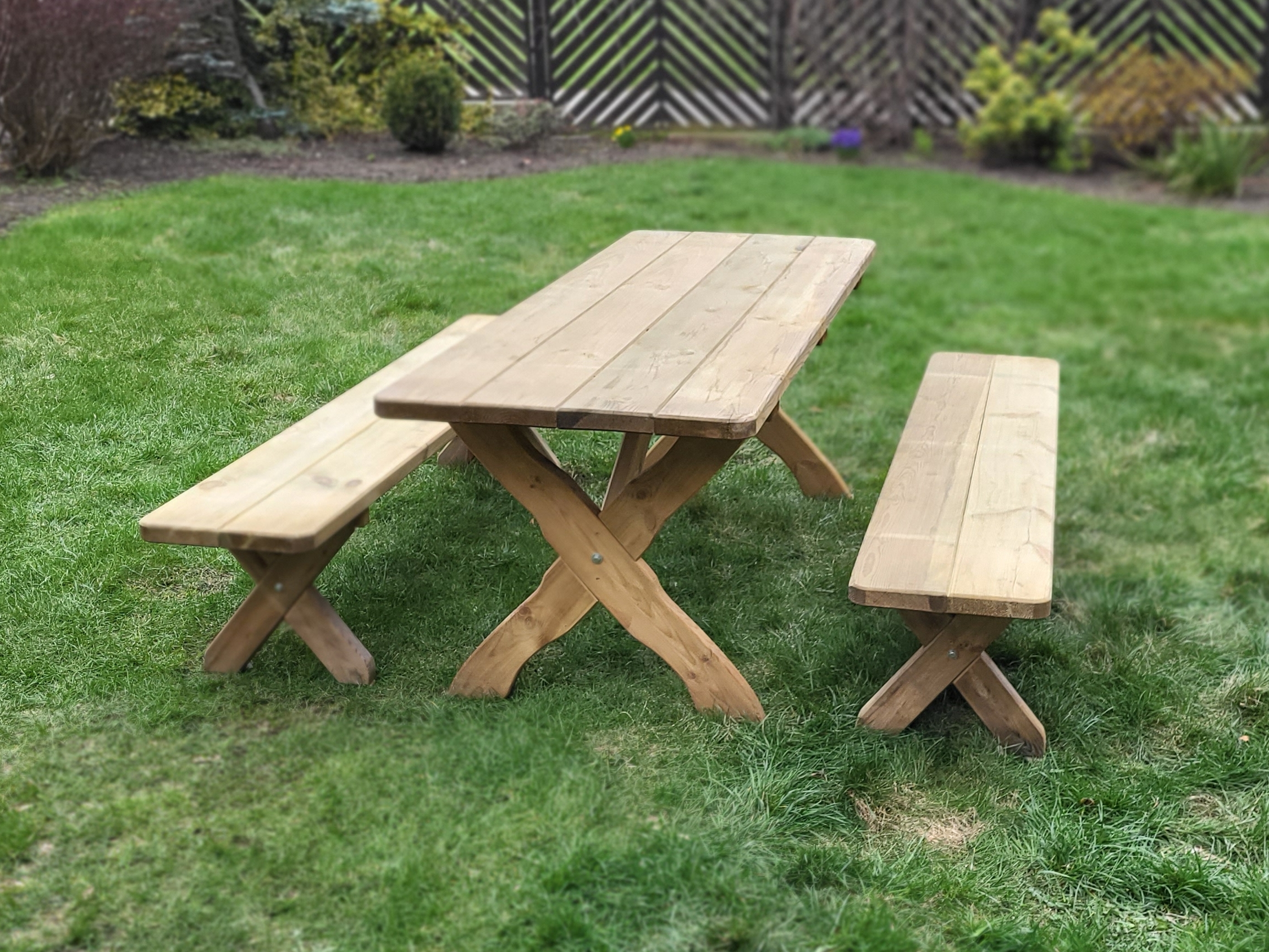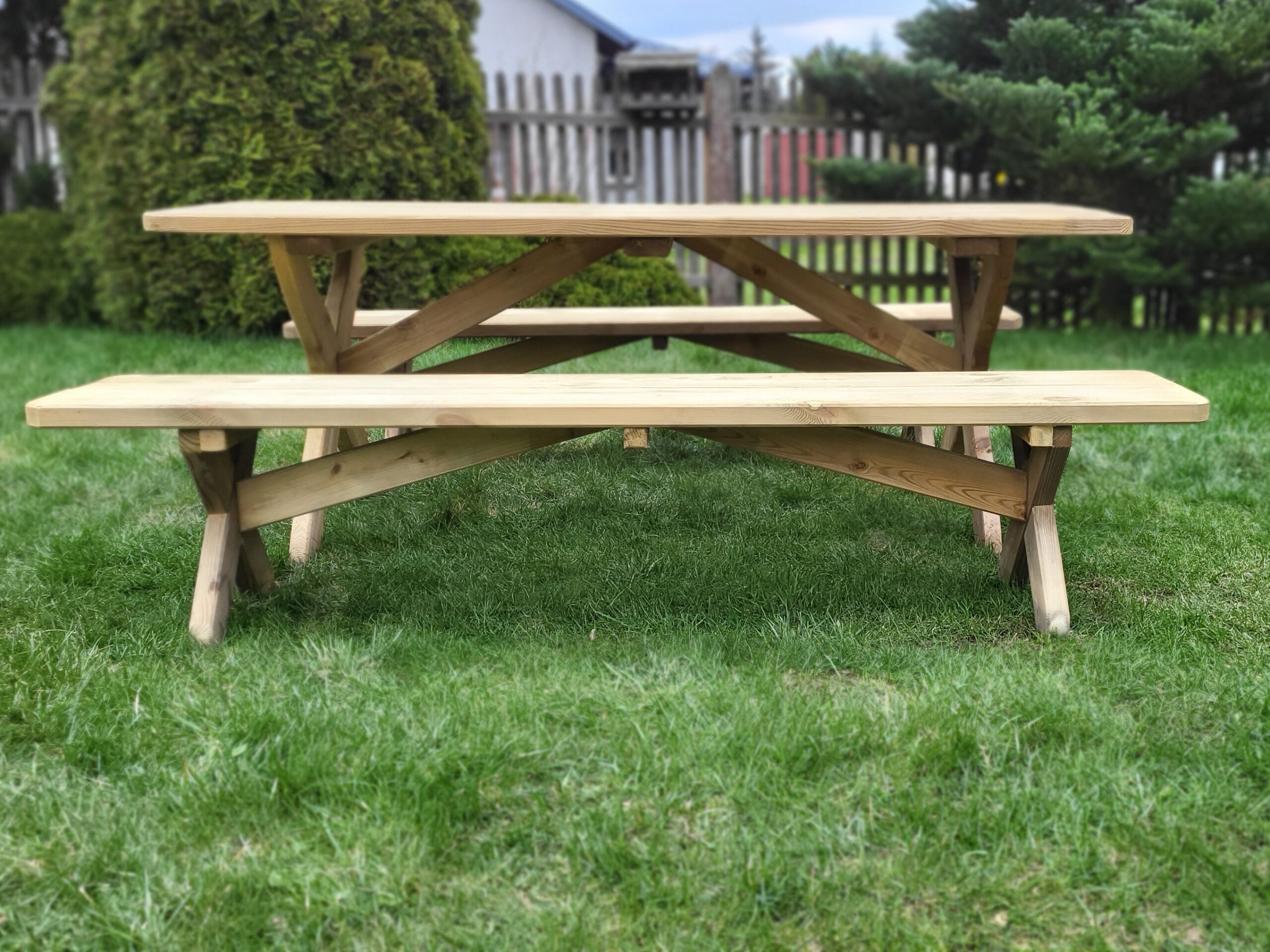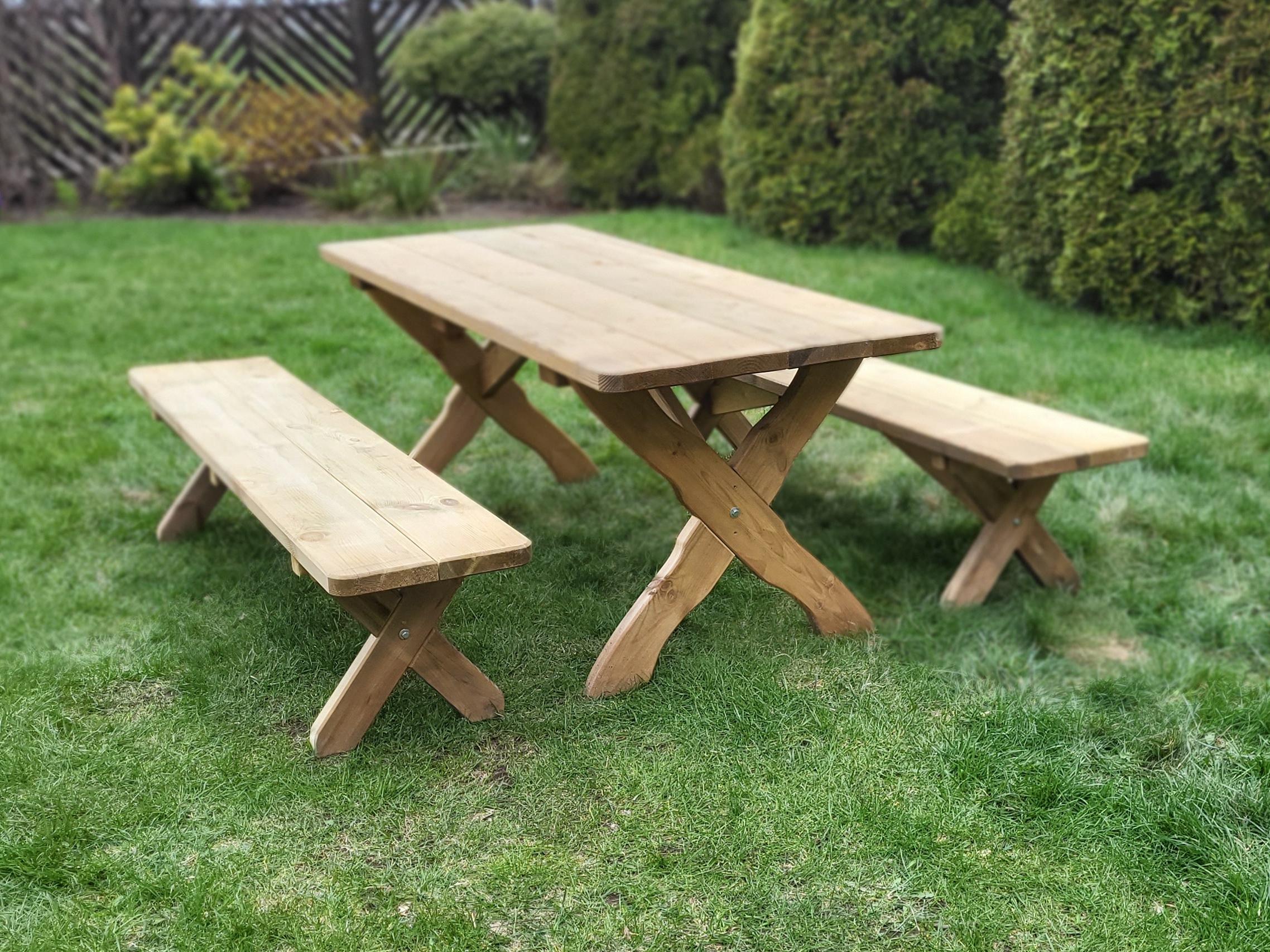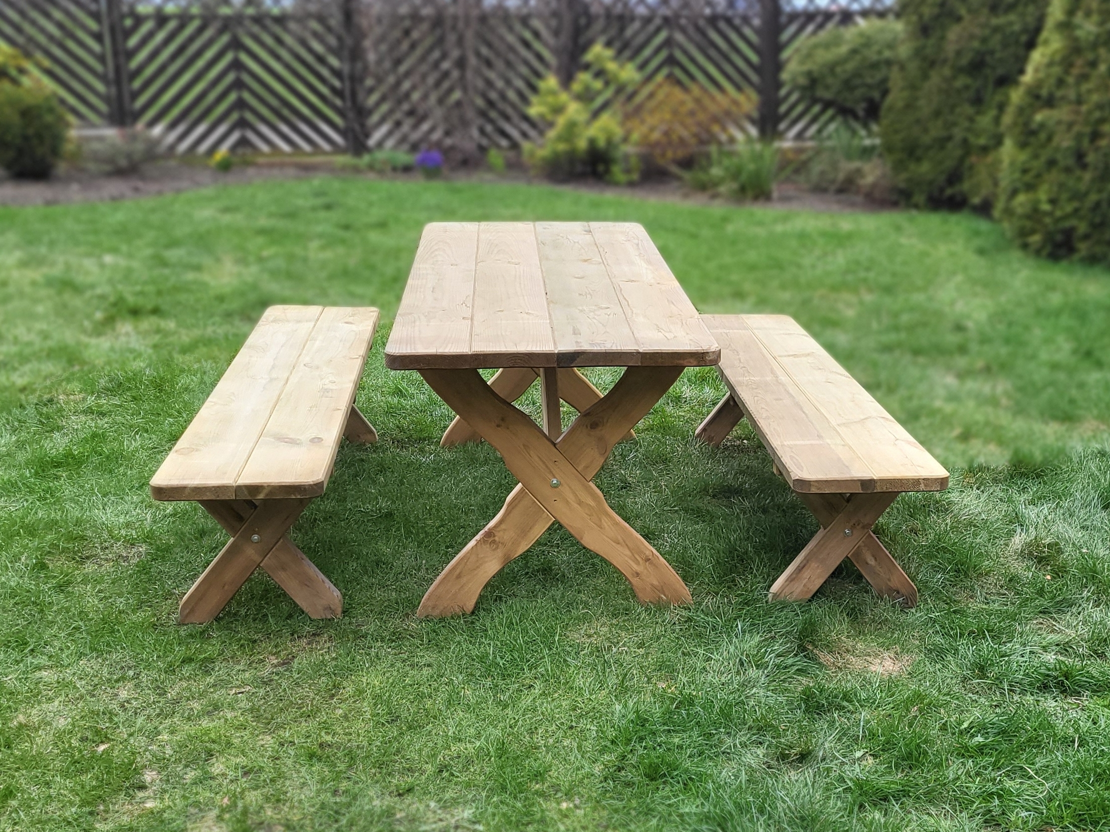 Meble o solidnej konstrukcji i prostym montażu, wykonane z impregnowanego ciśnieniowo drewna sosnowego.